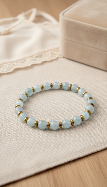 Bracelet aigue marine et hématite dorée pour cadeau dame en pierres naturelles
