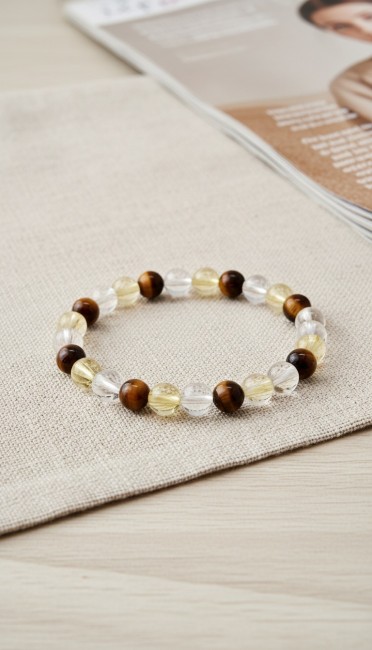 Bracelet Reussite Professionnelle en Citrine, Oeil de Tigre, Cristal, Bracelet Cadeau Adolescente