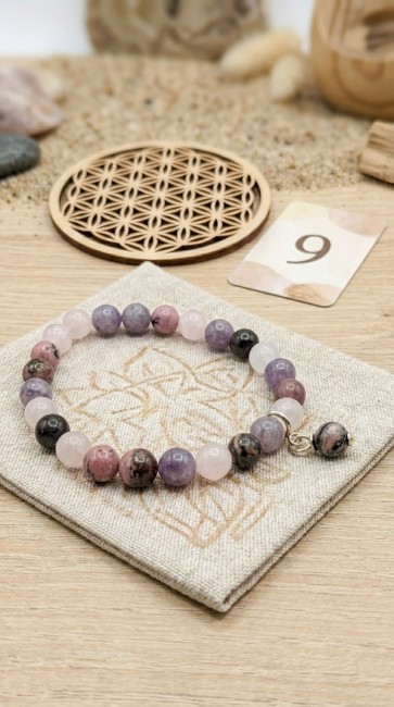 Bracelet Rhodonite, numérologie arcane 3 du tarot des cristaux de l'impératrice Jayne Wallace